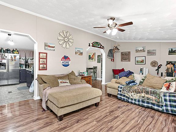 Sitting far back from the road... this gorgeous property is the essence of that country living that offers peace and privacy to give you that tranquil escape you have been looking for. The property is a 10.77-acre (+/-) plot of land that backs up to woodland teeming with wildlife and looking out into the gentle rolling land of central Kentucky... plus the entire perimeter of the property has been fenced! The home is a 2007 (60X28) Southern double wide on a permanent foundation and has been converted to real estate meaning it qualifies for fixed rate mortgage financing. This is a beautiful home that opens to a cozy living room with glossy woodgrain flooring. The living room also has a duo of sun-enticing windows that look out into the scenic landscape. Just off the living room is a spacious primary bedroom with a large walk-in closet and private bath. This bathroom has a desirable dual vanity and nifty wall shelving... plus a walk-in shower and conveniently located utility room that is accessible from the bathroom or kitchen. The kitchen is wonderfully coordinated with deep colors and bright finishes. This kitchen is souped-up with a plethora of cabinets and a good amount of counter space including a breakfast bar. The cabinets have a deep blue color that pair brilliantly with the countertops and are brightened by chic light fixtures and contrasting silver handles. Not to mention... the appliances (refrigerator, dishwasher, stove, and microwave) stay too! This spacious kitchen also has a sizable dining area that looks out into the woods. On the other wing of the home are 3 additional bedrooms (for a total of 4 bedrooms). These 3 bedrooms have matching carpet and offer great utility. Servicing these bedrooms is another full bath with matching qualities as the primary bath including more nifty wall shelving. Then you have the options of watching the world go by on the covered front porch, grillin and chillin on the covered rear deck, or utilizing the generous 24' X 16' pavilion. The property comes with splendid amenities that include an awesome 30' X 36' shop building. This garage is a perfect spot for those tinkering jobs or another place to gather as the building is insulated, wired with electric, has concrete floors, and overhead garage doors on either side. We're just getting started on the outside as there is also a 24' X 12' outbuilding with a loft to offer more utility and storage space and just when you thought this slice of paradise couldn't get any better... We have yet to mention about the nice sized pond with a dock. The dock is partially covered and connected to a shed giving you a place to hangout by the water without having to go anywhere. This is the place to get away from it all and enjoy what the land has to offer so call JESSI VAUGN to make your offer today! ***NOTE: WE DO NOT PAY COMMISSION ON SELLER PAID CLOSING COSTS & PRE-PAID ITEMS --- LISTING BROKER: 2.25% - SELLING BROKER: 2.25%