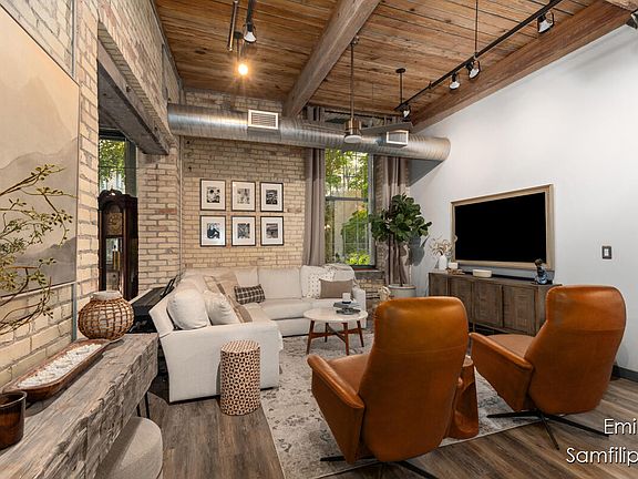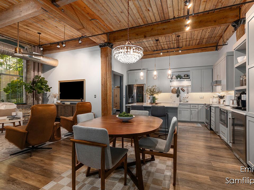 Welcome to a stunning urban oasis in the vibrant heart of downtown Grand Rapids! This meticulously designed 2-bedroom, 2-bath condo perfectly blends modern comfort with historic charm. Step inside to discover striking exposed brick walls & soaring wooden beam ceilings that create a cozy atmosphere. The open-concept layout offers seamless flow from the tranquil living area to the elegant dining space & contemporary kitchen, ideal for entertaining. The kitchen has sleek stainless steel appliances, luxurious quartz countertops, & a spacious island. Retreat to the serene primary suite, complete with an ensuite bath & ample closet space. The versatile second bedroom is perfect for guests, a home office, or a hobby space. Enjoy resort-style amenities, including a refreshing pool, relaxing hot tub, & rooftop deck showcasing stunning city views. Located just steps from the picturesque riverfront, eclectic shops, dining, & cultural attractions, this condo offers an unbeatable lifestyle! This beautiful condo features TWO deeded parking spaces just steps from your front door, an outstanding benefit that distinguishes this property from others in the vicinity! Located in a highly walkable neighborhood, it offers a tranquil garden view and a sleek gourmet kitchen equipped with premium smart appliances, a beverage fridge, and a built-in coffee bar. Additional amenities include smart light switches, a smart refrigerator, and a smart thermostat. The condo also boasts a serene forest courtyard deck and a private electric vehicle charger. Residents of the Boardwalk enjoy access to a rooftop deck with stunning cityscape views, a heated pool, a year-round hot tub, in-unit laundry facilities, and 24-hour security. The neighborhood is known for its walkability, family-friendly atmosphere, and vibrant community spirit. You'll be close to dining, shopping, cultural attractions, scenic views, and historic charm!