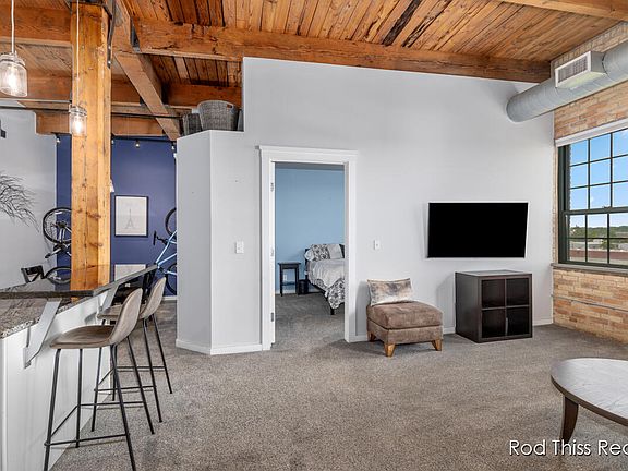 Wow! Gorgeous Grand River views from this top (5th) floor condominium home! This sought after Boardwalk Condominium encompasses tasteful updates plus large exposed wooden beams and brick. Featuring an open floor plan; large kitchen with island/bar (all stainless steel appliances included), dining area, river facing living room, 2 river facing bedrooms, full bathroom with double vanity. Large walk-in closet with washer/dryer. Designated covered parking space. The Boardwalk offers an array of amenities including outdoor pool, year-round hot tub, dog park, courtyard, on site security, rooftop deck with gas grills, game room. Major City of G.R. (almost $10M) Canal Park renovation taking place right now! Wonderful Grand Rapids living with spectacular Grand River views! See this one today!