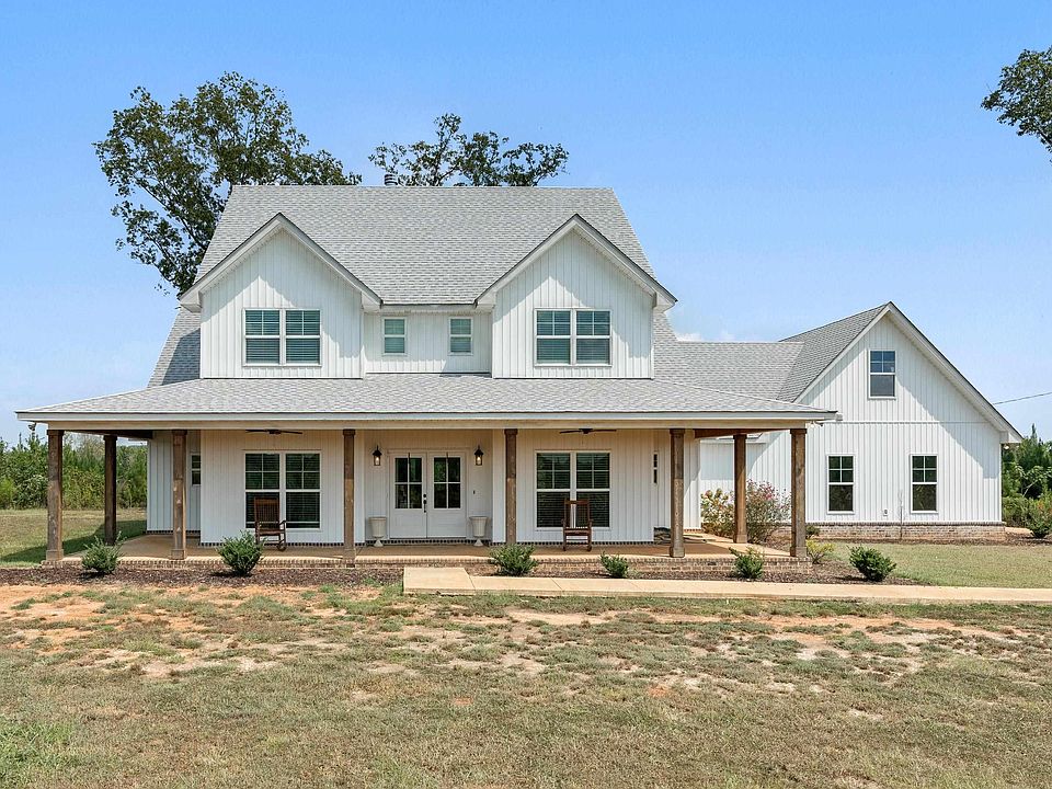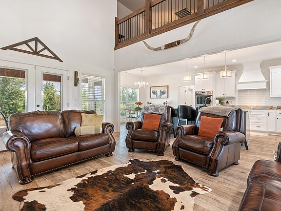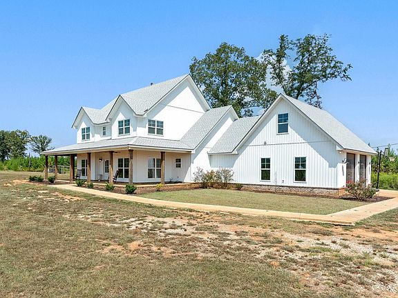 Welcome to this newly built farmhouse-style home that offers 5 spacious bedrooms, 3.5 baths, and sits on 21 breathtaking acres of beautiful scenery. Step inside to an open-concept layout filled with natural light and modern farmhouse finishes. The gourmet kitchen boasts a massive island, double ovens, a large walk-in pantry, and a cozy breakfast nook, all flowing seamlessly into the living room centered by a stone wood-burning fireplace. The main level features a formal dining room, a luxurious primary suite with dual walk-in closets and a spa-like bathroom with a double shower, plus a 2nd bedroom perfect for guests or an office. Upstairs, you'll find three more bedrooms, two full baths, and a loft overlooking the main living area. Enjoy peaceful mornings and evenings on the wraparound porch or host unforgettable gatherings on the covered back patio. Additional highlights include walk-in closets in every room, a spacious 2-car garage, and endless outdoor potential!