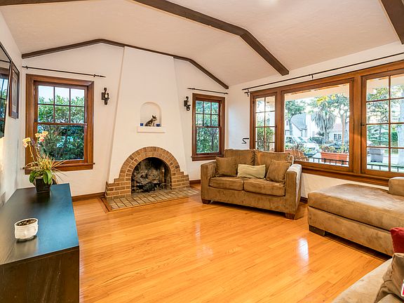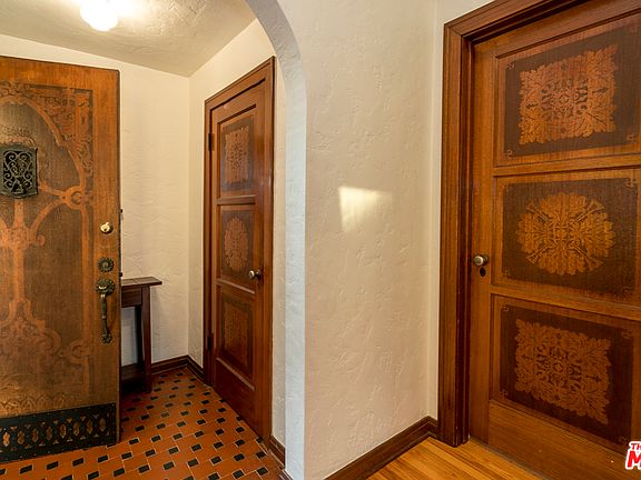 If you're looking for an authentic Spanish home in a beautiful, walkable neighborhood look no further. Enter the front door and notice the ornate carvings and the original tiles of the entryway. Soon you'll realize almost all the doors were beautifully hand carved by artisans in 1930. To say "they don't make 'em like this anymore" is an understatement. The living room w/ barreled & beamed ceiling, gleaming hardwood floors, cozy fireplace and gorgeous original windows will be a hot topic of conversations with your friends. The dining room opens nicely to the living room and has French doors to the patio and backyard with expansive lawn, garden beds and an urban orchard with 6 different fruit trees. Just blocks from Trader Joe's, The Coffee Bean and Whole Foods. Also featuring a breakfast room with built-ins, a 2 car garage with attached workshop, this is an easy home to live in with upgrades to the kitchen, baths, electrical, sewer system, AC, copper plumbing and a newer roof.