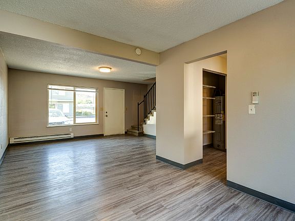 Two bedrooms, one bathroom townhome. Two parking spaces. New flooring and paint. Each unit has a mini split A/C and Heat system on the first floor and in one of the bedrooms upstairs. Backs up to Gervais Park and the Crook County Library.