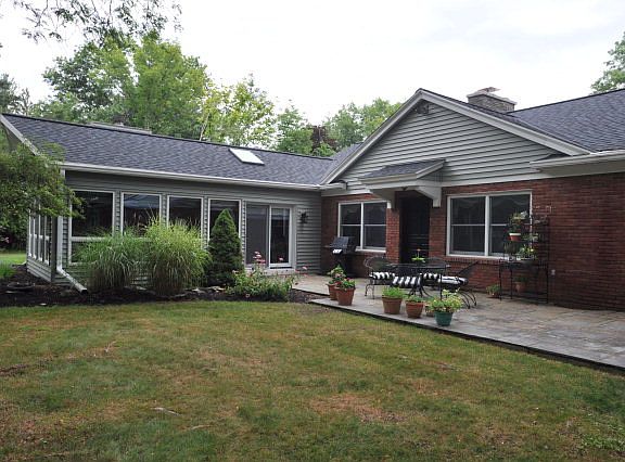 Impeccably maintained Brick Ranch, w/two car attached garage in one of Elmira's most desirable locations. New roof and driveway resurfaced in 2015. Cook's kitchen w/quartz & island open to great room with vaulted ceiling. 2 walls of windows & wood burning fireplace. Great room & dining room open onto large private patio. Owner's suite with 3 additional bedrooms; lower level recreation room w/3rd fireplace & 3rd full bath. Orientation on large lot ensures privacy.