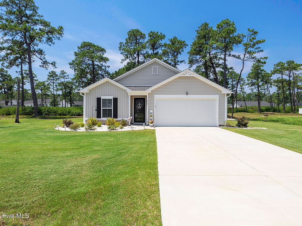 Come explore this beautifully maintained Hickory model by Logan Homes, built in 2022 and offering 1,583 sq. ft. of thoughtfully upgraded living space. Unlike a new build, this home includes valuable extras you won't find in standard models. Enjoy LVP flooring throughout the living room, kitchen, laundry room, and bathrooms, plus custom paint throughout the interior—and even in the garage. Window blinds are already installed on every window, and both a storm door on the front and a screen door on the rear sliding door have been added for year-round comfort. All windows also come with screens installed. Situated on an oversized lot nearing ½ acre, the outdoor space has been enhanced with irrigation in the side yards, and the entire lot has been cleared, leaving just the right amount of mature trees to provide natural shade and privacy.