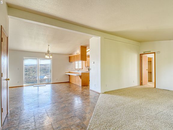 Sitting in Pendleton OR, on almost a ¼ acre, corner lot, and surrounded by a classic, white-picket fence, this 3 bedroom, 2 bath features almost 1,800 square feet of generous spaces. Step into the living room and you find vaulted ceilings, modern finishes, and an open concept floor plan.The dining room conveniently sits adjacent to a functional kitchen featuring modern flat panel cabinetry, stainless steel appliances, and a walk-in pantry. But the heart of the home just may be the expansive family room with walls of wrap-around windows offering loads of light, and scenic views. The bedrooms are a “split” design with the primary suite boasting an oversized, ensuite bath and walk-in closet - with the other 2 bedrooms on the opposite side of the home. The wooden doors and trim present a sophisticated decor and a sharp contrast to the alabaster freshly painted interior. A separate utility room includes a washer/dryer set and outside you find a carport enclosed on three sides and a storage unit. The backyard is complete with a BBQ patio and fenced yard. Home has been moved and professionally installed, and only qualifies for VA Financing or 5% down Conventional/Portfolio loan. Hard to find home in this price range. Call Today!