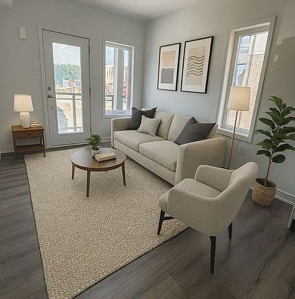 Overlooking farmlandOpen-concept main level layoutModern finishesModern kitchenStainless steel appliancesQuartz countertopsIn-suite laundry
