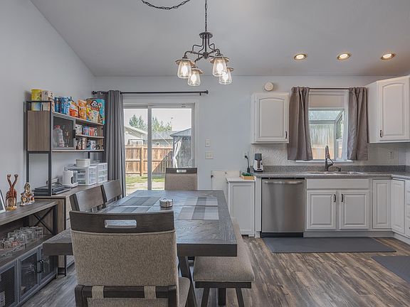 Come see this beautiful and well cared North Pole home! This property is in the city limits, so it's close to all amenities and is on city water/sewer. It has a great open living space with a well-appointed kitchen and vaulted ceilings. The kitchen features newer appliances, and a beautiful backsplash to finish the space. From the dining area, you can access the large and private, fenced back yard. This outdoor space will be a great place to spend your summer afternoons! There is ample parking with a large 2 car garage, paved driveway, and RV parking area. This home has been recently painted and has newer flooring. Home has a VA Assumable loan for qualified buyers. Come see it today, it won't last long!