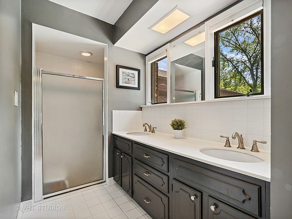 Prime East Location Sprawling first floor with Main level Primary bedroom! Over 3000 sf of unique living space. This home is situated far from Shermer Road with a circular driveway which makes entering & exiting simple. Be prepared to be captivated by this unique home that is designed for any type of family . The open floor plan has a room adjacent to the kitchen which can be the perfect place for a child's play area or home office. Chefs' kitchen is complete with Large island, seating & breakfast room overlooking one of two private patios. Get cozy in Den/Family room with one of the four cozy fireplaces. Main Level Primary Suite complete with private bath, walk-in closet & sitting room/home office which opens to yard. An abundance of natural light floods through the windows bringing nature indoors. Character and Style can be seen throughout the home. The sunroom, styled with handsome wood pitched ceiling & fan, is the perfect way to end or begin your day. The upper level has three guest bedrooms. One which can be a second Primary suite. See floor plans. There is huge attic space adjacent to this room that can easily be converted into third full bath to make this an En-Suite. The lower level has a man/woman cave with bar, large screen for theatre style entertainment, & second laundry. Iron fence encloses yard providing safety for pets or children. The home is not only set deep on lot but has a very spacious yard area that is all professionally landscaped & lit complete with: Fire pit area, Gazebo over hot tub & bar. Located in award-winning school districts. Minutes to 94 Edens Expressway which makes your commute to the city effortless. Downtown Northbrook Shops, restaurants, cafe shop (SB) & train are in walking distance. Many other updates include: UPPER LEVEL WILL HAVE ALL NEW WINDOWS PLUS MASTER BEDROOM THEY be will be installed early November, new carpet in master, freshly painted & Carrara Marble splash back in kitchen, Incredible home and Value