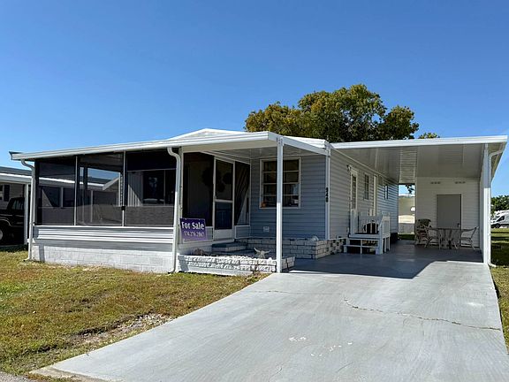 This charming two-bedroom, two-bath home is located in the highly sought-after 55+ community of Colony Cove in Ellenton, Florida, a place where resort-style living and friendly neighbors make every day feel like a vacation. Step inside to find a cozy and welcoming kitchen with updated lighting, an over-the-stove microwave, and beautiful vinyl plank flooring. The space is bright, clean, and thoughtfully designed for easy Florida living. The living room and both bedrooms feature soft carpeting that adds warmth and comfort throughout the home. The guest bedroom currently features twin beds, but is spacious enough to accommodate a queen. The guest bathroom includes a tub and shower combo with a clean, modern look. The primary suite offers ample storage with three closets, including a convenient linen closet, and an ensuite bath with a step-in shower for ease and comfort. Enjoy peaceful mornings or relaxing evenings in the large screened lanai, a favorite gathering spot for Florida residents year-round. Located on a quiet back street within the community, this home offers extra privacy while keeping you close to everything Colony Cove has to offer. Life in Colony Cove is all about connection, recreation, and relaxation. Residents enjoy access to six heated pools, four clubhouses, an on-site library and laundry, and dozens of clubs and activities for every interest. There's even a community bus offering group outings to local shops, restaurants, and attractions like the casino or racetrack. Colony Cove is an age-qualified (55+) five-star resort community of manufactured/mobile homes. The Cove boasts 5 clubhouses, 6 heated pools, a riverfront pavilion, and private fishing pier, a private marina, a fenced dog park (very pet friendly), tennis, shuffleboard, new pickleball courts, 2 new fitness rooms, 24-hour patrol, clubs of every interest, and much more. There are daily planned activities throughout the park. Bottom line, if you get bored here, it's your own fault! The lot rent in Colony Cove is based on the home's location. All listing information given to us is considered appropriate and reliable but we always recommend home inspections by independent companies who have a background and thorough understanding of manufactured homes. We cannot guarantee the accuracy of the information given to us or the home's condition. Lot rents are determined by the community office, not our company.