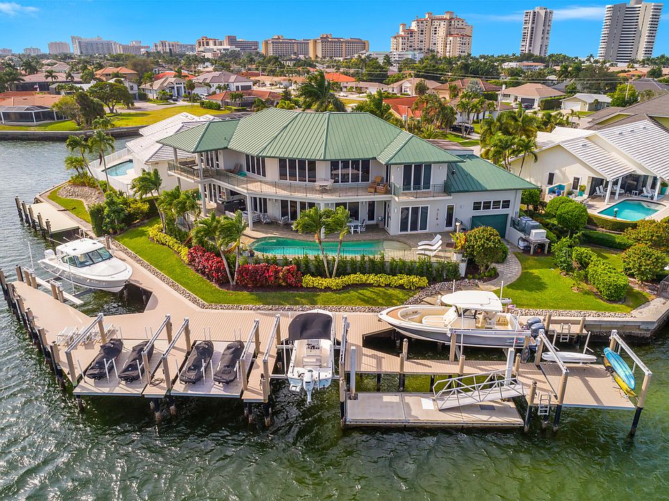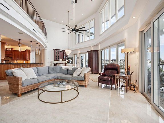 Live the dream - no Yacht Club membership required. This remarkable residence offers a full resort-style lifestyle with its own private marina designed for endless recreation, relaxation and adventure. Whether you're ready for a day on the water or simply soaking in the incredible views this property makes it effortless to enjoy paradise. For the boating enthusiast, choose from three boat lifts or two dual jet ski lifts for instant access to the bay. Prefer a slower pace? Slip into tranquility using the dedicated kayak and paddleboard lift and explore some of the most breathtaking waterways the island has to offer. When staying ashore, lounge beside the sparkling pool & spa surrounded by lush tropical landscaping - including your very own fruit trees. Once inside, the gourmet kitchen might tempt you to cancel those dinner reservations. Appointed with premium black granite, a Viking Professional Range and a cherry Sub-Zero refrigerator, it pairs elegance with culinary excellence. Custom cherry cabinetry, a kitchen island with built-in sink and microwave, plus a walk-in pantry with an additional sink provide both beauty and function. Prefer cooking outdoors? The fully equipped outdoor kitchen complete with pizza oven makes entertaining unforgettable. This magnificent home was built prioritizing family accommodations & entertainment to its fullest. Gorgeous dining area has wine cooler and wet bar, and the spacious living room has a warm & inviting gas fireplace. Other luxuries include an elevator, a central interior & exterior music system. Two oversized master suites, and three additional bedrooms + an extra storage room. Incredible water views from the expansive glass second level loft with piano and extra living space. The marble staircase flows throughout the foyer great room, dining area, and kitchen. Gigantic 4-car garage with endless storage including loft, and an adjacent utility-workshop room which must be seen. Garage also has a rear roll-up door for easy egress to the back of the property. The whole home generator provides peace of mind and uninterrupted luxury living. Enjoy evenings around the firepit while admiring the oversized pool, spa and deck area. Renowned Resident's Beach, just one of the island's treasures is just a quick golf cart ride away. This isn't just a home - it's a total lifestyle. A sanctuary of luxury, adventure and endless coastal living.