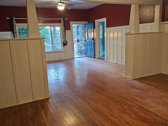 Fenced yardNew tile back-splashLarge roomsHigh ceilingsLots of cabinet spaceBuilt in wood boxesBuilt-in china hutch