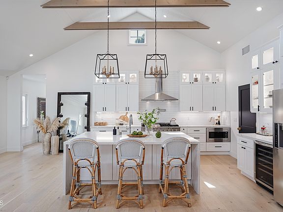 Reimagined and taken down to the foundation in 2020, designed by the renowned Hamilton Architects. This stylish 3 bed 2.5 bath modern farmhouse is a Coastal California Dream Home. It has superb timeless curb appeal. Entering the rich solid wood front door through the foyer you are greeted with the airy and roomy open layout including the great room, kitchen and living room. European engineered hardwood flooring throughout. Oversized island, quartz countertop, stainless steel chef's kitchen, built in wine cooler, microwave. 48' wide gas stove with 2 convection oven, grill and griddle. ~20ft high Cathedral vaulted ceiling with shiplap design and dramatic wood collar ties. Built in surround sound system. 3 skylights bring in all the natural lighting you need. Double french door extending out living area to the backyard creating the indoor outdoor california living. Triple pane windows and doors throughout entire home to better insulate sound and temperature. The master suite also boasts a built in stereo system and high cathedral ceiling. large walk in closet and large bathroom with double sink and wet room and stand alone tub. Double French doors lead to another wood deck out to the backyard. Podocarpus surrounds the backyard for maximum privacy. Simplisafe security system, arlo security camera, nest AC/heat system, emtek and baldwin hardware, separate laundry room, large 2 car garage with epoxy flooring. Too many features to list. ALL of this in walking distance of 2 award winning schools, shops, restaurants and our local beaches.