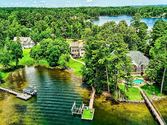 A true Lake Murray showpiece with a sunset view, this Modern Spanish-Mediterranean masterpiece offers over 258 feet of pristine waterfront in a peaceful Chapin cove with sweeping big-water views and direct boat access to the lake’s most iconic destinations—Liberty on the Lake, Catfish Johnny’s, Bomb Island, Sandy Beach, and the Lake Murray Dam. This custom-built 4,630 sq ft home features 5 bedrooms, 5.5 baths, and luxury finishes throughout. A brick-paved drive leads to a dramatic stone façade framed by professional landscaping, irrigation, and accent lighting. Inside, hand-carved oak doors open to soaring ceilings, maple hardwoods, and stamped concrete details. A floor-to-ceiling limestone fireplace anchors the living room, flanked by built-ins and bay windows with breathtaking lake views. The chef’s kitchen impresses with custom maple cabinetry, built-in organizers, granite countertops, an island with wine storage, beverage cooler, and walk-in pantry. Multiple screened porches, deep verandas, a BBQ terrace, a hot tub area with panoramic lake views, and a fenced yard create the ultimate outdoor retreat, complete with a private dock, covered lounge, and boat lift. The main level includes a laundry room, hobby room, half bath, and three bedrooms—one with a private ensuite and another with a shared full bath. Upstairs, the spacious primary suite offers lake views, dual closets, and a spa-style bath with soaking tub, frameless shower, and twin vanities. Two more bedrooms share a full bath, and above the 3-car garage, a large bonus room features a full bath, wet bar, fridge, microwave, and wine chiller—ideal for guests or entertaining. Zoned for award-winning Chapin schools (Lex/Rich 5), this is Lake Murray living at its finest. Disclaimer: CMLS has not reviewed and, therefore, does not endorse vendors who may appear in listings.