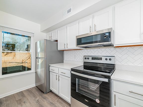 Upgraded kitchens with shaker cabinets, quartz countertops, stainless steel appliances (fridge, dishwasher, stove, microwave, full size washer and dryer)
