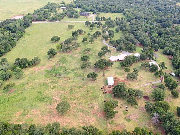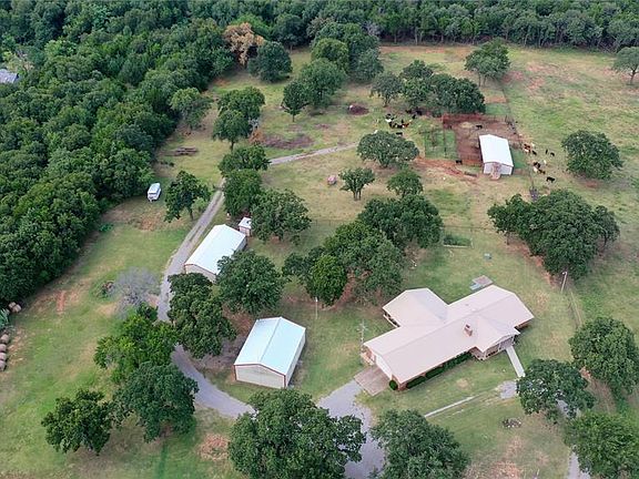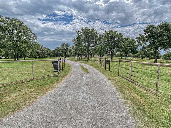 Just a 15-minute drive from I35 sits this well-kept ranch-style home on 41.22ac. Numerous mature trees on the property only add to the serene and park-like feel you get as you drive the gate and up the winding drive to the home. You can enjoy the property from the covered front porch or the large covered back patio. Plenty of storage and ample cabinet space in the home as well as numerous built-ins. The two-car garage is oversized, with room for extra storage. The living room has wood beams, and the den/family room is located on the other side of the double-sided wood-burning fireplace. A designated office/study with built-in cabinets and a half bath are located off the back patio door making it convenient when coming in from the shop or working the livestock. 30x40 shop with concrete floor, five-bay equipment storage barn, cattle barn with corral, and the chicken coop make this property ready for livestock. A large underground storm shelter is located close to the house. New windows throughout and new siding were installed in 2017. Fire hydrant in front of house is decorative only and has no water supply.
