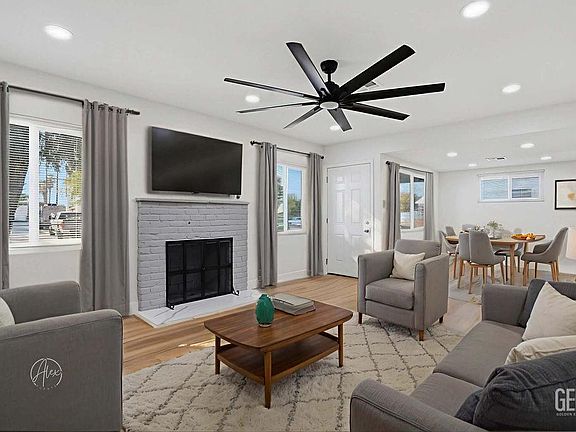 Beautifully Renovated Charmer! Step into this stunningly updated 3-bedroom, 1-bath home that combines modern comfort with timeless charm. Enjoy the welcoming front porch before entering a stylish interior featuring wood-look flooring throughout, and designer lighting fixtures. The brand-new kitchen shines with quartz countertops, stainless steel appliances, sleek black hardware, and custom cabinetry, complete with a cozy breakfast nook. The bathroom offers a newly tiled shower and tub combo with a contemporary vanity and mirror. Outside, you'll find a detached two-car garage and a separate storage unit ideal for a future ADU. The spacious backyard is perfect for family gatherings and outdoor entertaining. This home is full of character, functionality, and opportunity! Roof, Septic tank, windows, AC unit are all brand new. Come take a look!