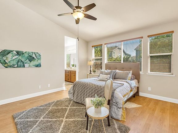 Beautiful one-story home in Waterman Ranch on a corner lot. This home offers 4-5 bedrooms, 2.5 baths or DEN. Walk into this spacious open floor plan with aprx. 2,360 sq ft of living space & a 3 bay car garage. Welcomes you to a tall ceilings with living room & dining room combo. Features such as laminate floorings, recess lightings, ceiling fans, two-toned paint and more. Bright family room with fireplace with extended hearthstone that over looks the open kitchen with tile countertop, custom backsplash, walk-in pantry, dining bar, breakfast nook & more. Spacious primary bedroom with walk-in closet and sumptuous bathroom featuring dual vanity sinks, oval bath tub & walk in shower. Inside laundry room with upper cabinets. Enjoy & relax on your low maintenance private backyard with covered patio where you can garden, barbecue & entertain. Adjacent to Al Gates Park and nearby Bryan Miles Park & Derr-Okamoto Community Park. Minutes away from Top Rated Elk Grove Schools. Close to shopping, parks & freeway access. Low Mello Roos. Come see it today!