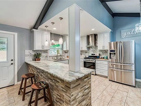 Open floor planStainless steel appliancesGranite countertopsCorner lotVaulted ceilingsWood beamsOpen concept kitchen