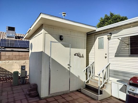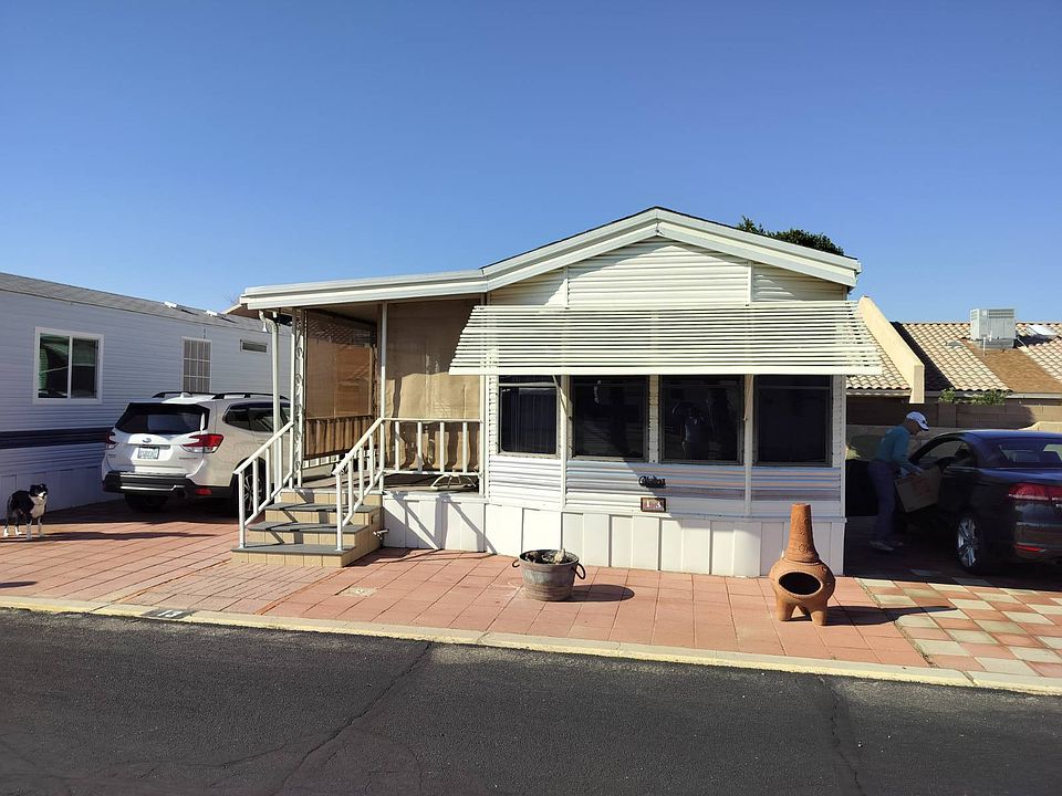 Park Model for sale with 2 bedrooms and 1 bathroom. Attached shed and pavers galore. Covered porch to enjoy the Arizona sun. Home comes furnished and move in ready. Wonderful community with lots of activities to enjoy. Including pickleball courts, swimming pool, gym and so much more. Affordable winter get away or year-round living.