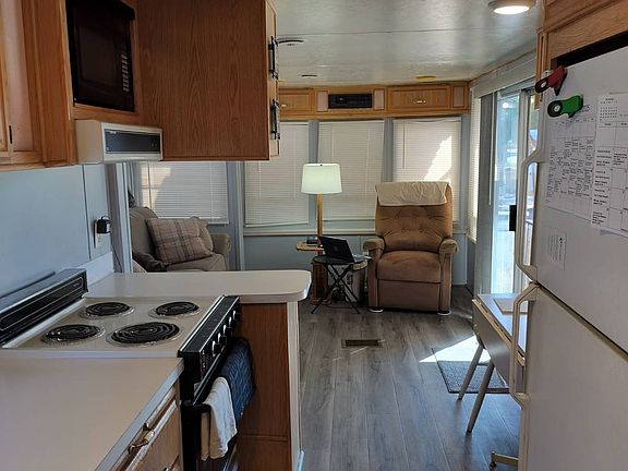 Park model for sale with 1 bed 1 bath and nice covered porch. Large parking area. Home will come furnished and ready to move in. Wonderful community with lots of amenities. Pool, gym, clubhouse, pickleball courts and so much more. Located close to the clubhouse.