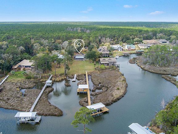 JUST REDUCED! Immaculate three-bedroom, two-bathroom beautifully updated home with sweeping water views nestled on 1.2 acres along Palmetto Creek. This property boasts large, enchanting oak trees on a high elevation lot, so no flood insurance is needed. This is a boater's paradise being just minutes from Pirates Cove, and a short boat ride to the Gulf!! New pier, dock, gazebo, crab deck, and boat lift installed in 2020 just before Hurricane Sally ($100,000 invested). The home did not flood, and the docks did not sustain any damage during Hurricane Sally due to being in such a protected area! New Hardie Board exterior installed in 2016, the kitchen and bathrooms were updated in 2018 and a new driveway was poured in 2022! This is a fabulous single level home with vaulted ceilings in the dining room and main living area. The main living area also features a wood burning fireplace. An additional flex space off the main living area would be ideal for overflow guests, an office or could be converted to an additional bedroom. A large (11’x33’) screened porch that can be accessed from the main living or office area is the perfect place to relax. This property is truly a dream, come enjoy dolphins, manatees and eagles as your neighbors!! Don’t let this rare opportunity pass you by! SELLER IS MOTIVATED AND SAYS BRING ALL REASONABLE OFFERS!