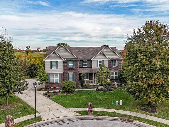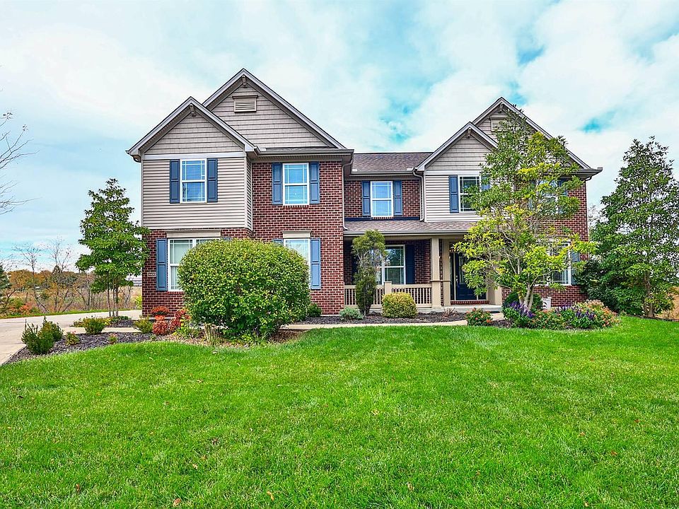 Beautifully appointed Marietta floorplan by Arlinghaus Builders in Westbrook Estates. Attractive multi-gabled full brick wrap exterior featuring an inviting covered front porch, manicured landscaping, private cul-de-sac lot, & oversized 3 car side entry garage w/ shop/storage area. 9 foot soaring ceilings on the 1st level. Leaded glass front door w/ transom & sidelights plus gleaming hardwood floors in the foyer. Gourmet kitchen boasts hardwoods, island, cherry cabinets w/ crown, tiled backsplash, granite counters, double built in ovens, large walk in pantry, & adjoining breakfast room w/ walkout. Living room offers a wall of windows overlooking the woods, hardwoods, crown molding, & gas fireplace. Formal dining room w/ chair rail & crown molding. 1st floor study has glass French doors w/ transom, & custom built in book shelves. Rear deck overlooks fenced private wooded yard & patio from basement walkout. Popular 2nd level floorplan includes 3 full baths, nicely sized laundry room, & huge bonus/family room. One of a kind primary suite accented by shiplap, cathedral ceilings w/ fan, 2 walk in closets, attached sitting/hobby room, & adjoining tiled bath w/ garden tub, double vanity, plus a spa like walk in shower. Other bedrooms feature adjoining full baths, 2 with walk in closets, & 3rd has double closets. Unfinished lower level is a blank slate w/ walk out, rough in for bath, & egressed window. Clean well kept home, 6 panel doors, tons of recessed lighting, & tasteful décor. Great established community w/ pool, low HOA fees, & surrounded by farm land / nature. Close proximity to shopping, restaurants, CVG, & new Union Promenade.
