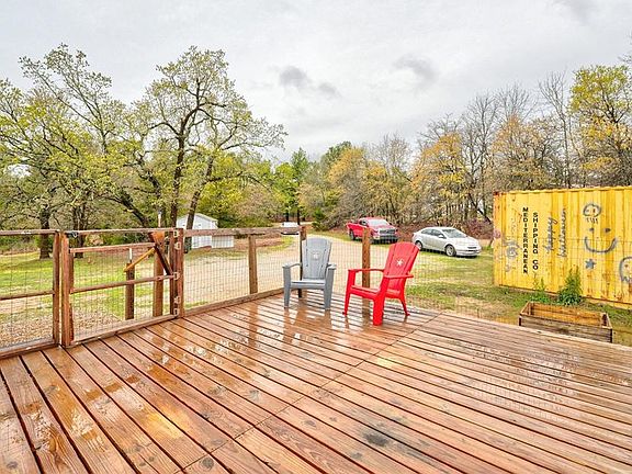Peace and quiet about on this secluded five acres. You'll find some special touches in this spacious, three-bed, two-bath mobile home that you'll want to see to appreciate. The living room, dining room, and kitchen flow comfortably and there's a remarkable wood burning stove on a custom rock hearth. The kitchen includes a penninsula work area with plenty of storage in addition to the pantry. The split floor plan offers two bedrooms and full bath on one side and master suite on the other with separate tub and shower. Outside, you'll find a beautiful wood deck, storm shelter, tree house, shed, and storage container, not to mention the trails meandering through this wooded five acres. Book your exclusive tour today!
