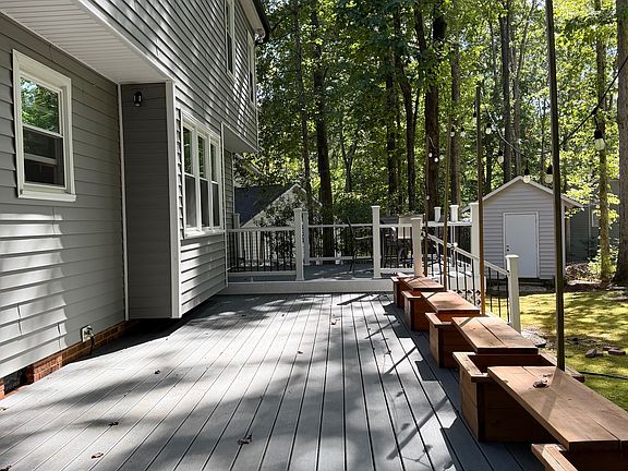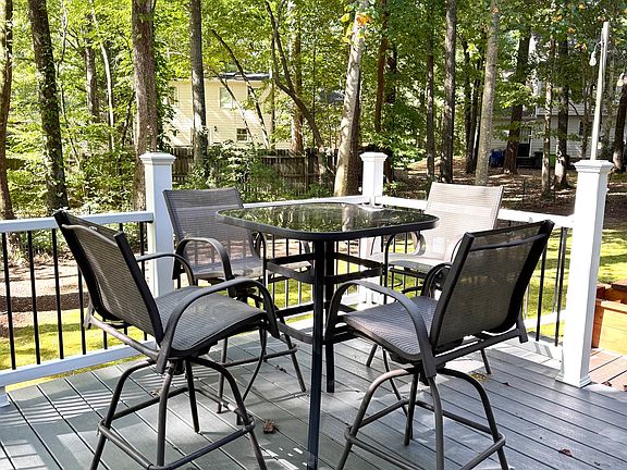 On the ground floor, you will find a generous-sized living room with doors leading out to the porch, breakfast nook, kitchen, formal dining room, laundry room, and half bath. Garage fits two cars. Upstairs, three generously sized bedrooms--all with walk-in closet spaces--and guest and master baths. In the back, a large porch and deck area, and fire pit area to enjoy evenings.