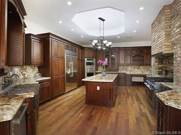 Elegant gated estate on lush builders acre in quiet neighborhood near Baptist Hospital, great schools & major highways. Andalusian inspired architecture & the finest finishes throughout including hand-crafted clay-tile roof, solid mahogany doors, hardwood flooring & custom impact windows & doors. Expansive high-end kitchen with center-island, commercial gas range & breakfast area. Luxurious ground floor master suite overlooks tropical grounds with stone terraces & pool for year-round outdoor living.