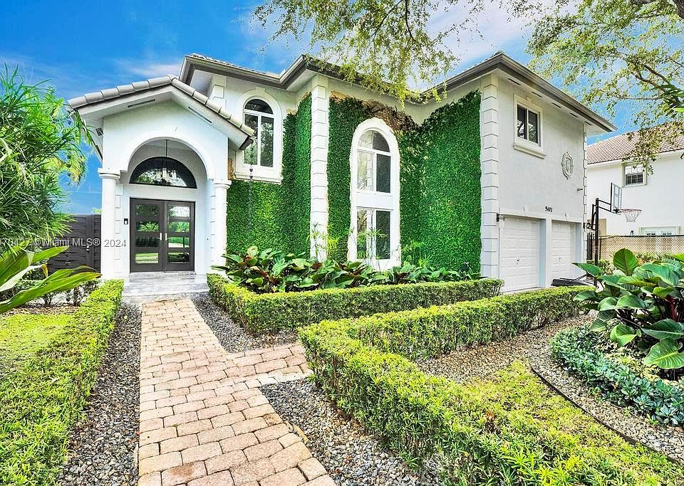 IMMACULATE TURN KEY CORNER LOT SINGLE FAMILY BUILT IN 2003 HOME IN THE DESIRABLE GATED COMMUNITY OF PINEWOOD GROVE. This updated house offers 5 full bedrooms, 3 full bathrooms, built in closets, pantry, laundry with, two car garage with A/C The sleek kitchen boasts a stunning Quartz Waterfall counter. Outside, an entertainer's paradise awaits with a FULL Kitchen, built-in BBQ, Burner, Hibachi grill, ice maker and refrigerator. The salt water pool is completely smart with automation, lighting, heat pump and sanitation, Mosquito misting System, Automatic Sprinkler system with an anti rust tank, alarm, cameras and nest A/C are also controlled with your cell phone high impact doors and windows and much more.