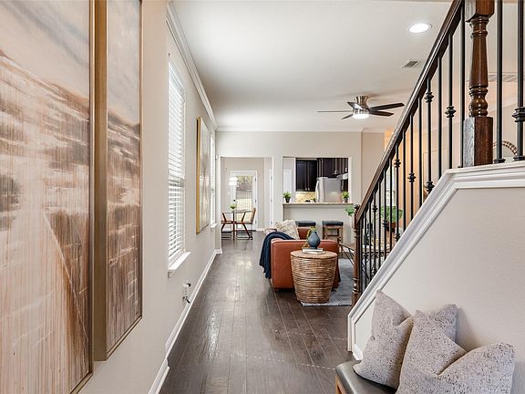 Experience sophisticated living in this elegant corner-unit townhome, perfectly situated in the gated Colina Vista community within Austin’s prestigious Four Points area. Nestled on a private corner lot, this residence offers an extra level of privacy not often found in townhome living, while still being just a short walk to top-rated Four Points Middle School and Vandegrift High School. Inside, the entire interior has been freshly painted, creating a crisp, move-in-ready atmosphere that complements the home’s open floor plan. Natural light pours through energy-efficient tinted windows, while Nest thermostats add a touch of modern convenience. Rich dark mahogany wood flooring flows through the main level and stairwell, leading to a stylish eat-in kitchen complete with stainless steel appliances, granite countertops, and a refrigerator that conveys with the home. The main-level primary suite provides a true retreat, featuring an oversized walk-in closet, dual vanity, and walk-in shower. Upstairs provides three bedrooms and one bath, while a versatile flex room offers the perfect space for a home office, media lounge, or game room. Thoughtful storage solutions enhance everyday living, including an under-stairs closet and durable metal overhead racks in the garage—ideal for keeping belongings organized and maximizing space. Beyond the home itself, Colina Vista residents enjoy resort-style amenities, including a sparkling community pool, BBQ area, and impeccably maintained common grounds—all with no exterior maintenance required. Relax with the peace of mind of a gated neighborhood, take your pet to the private dog area, and enjoy the convenience of a true lock-and-leave lifestyle. This property combines luxury, privacy, and an unbeatable Four Points location, offering the very best of Austin living.