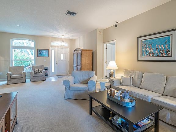 Welcome to Hunters Green, one of Tampa’s premier golf course communities featuring a 24-hour manned gate, tree-lined streets, and a peaceful, beautifully maintained setting that truly feels like home. This wonderful residence has had only one owner since it was built, and it shows in the pride of ownership and meticulous care throughout. Major updates bring peace of mind, including a new roof (2020) and all new windows (2019)—both adding long-term value, improved energy efficiency, and lower insurance costs. Offering a smart and spacious layout, this 4-bedroom, 3-bath home features both a living room and a family room, giving everyone plenty of space to spread out and gather—ideal for entertaining guests or simply enjoying time with family. The kitchen is perfect, complete with granite counters, beautiful wood cabinetry (some with elegant glass inlays), pull-out shelving, gas stove, a pantry, and a breakfast bar perfect for casual dining. A charming breakfast nook overlooks the family room, creating a warm and open flow that’s perfect for daily living. The fourth bedroom and guest bath are privately tucked away at the back of the home, offering wonderful privacy for visitors or family members. The primary suite is a relaxing retreat with two walk-in closets and an ensuite bath featuring dual separate vanities, a soaking tub, and a walk-in shower. Three sliding glass doors—from the primary bedroom, living room, and kitchen—open to the screened lanai, where you can enjoy morning coffee or an evening cocktail while overlooking your spacious backyard. There’s plenty of room to garden, play, or simply unwind in the Florida sunshine. A separate laundry room with a washer and dryer included adds everyday convenience, while thoughtful design and care make this home truly move-in ready. Just a short stroll—less than two blocks—takes you to the community park with tennis courts, and the top-rated Hunters Green Elementary School is located right within the neighborhood. The location couldn’t be better, with quick access to major roads, USF, Moffitt Cancer Center, shopping, restaurants, and places of worship, all just minutes away. With its ideal floor plan and an unbeatable location in one of New Tampa’s most sought-after communities, this home offers the perfect combination of comfort, quality, and convenience. Don’t wait—schedule your private showing today!