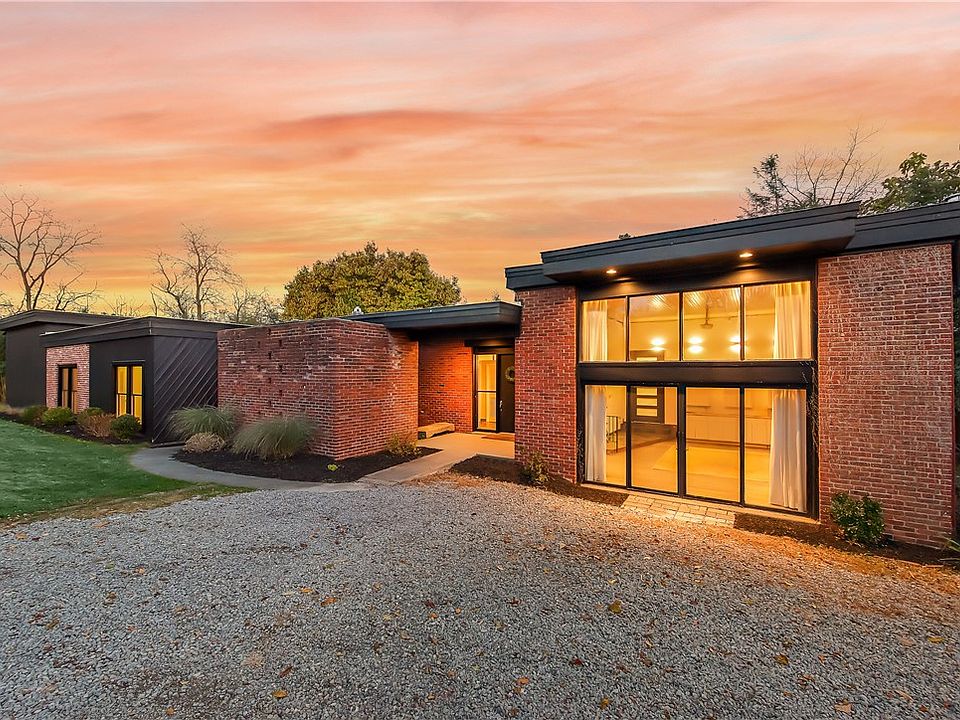 Rare and incredible Mid-Century Modern dream home opportunity in the heart of McCandless! This stunning, newly updated ranch sits on a secluded, tree-lined, private drive with a sprawling .84-acre lot, creating a peaceful, natural oasis yet close to all amenities. The home boasts expansive living areas, soaring ceiling heights, and abundant natural light. The centerpiece is the spectacular Great Room with a dramatic 17-foot cathedral ceiling, exposed brick, and picturesque forestry views, perfect for grand entertaining. The light-flooded, updated kitchen is a chef's dream, featuring a luxurious radiant heated floor, extensive soft-close white shaker cabinetry, two dedicated sinks, stainless steel appliances, and abundant granite counter space. The attached living room offers a cozy retreat with an oversized, wood-burning fireplace. The luxurious owner's suite boasts a soaring ceiling, fan, chandeliers, spa like bathroom and a private walk-out patio. For more information visit video.