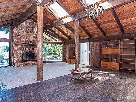 This lovely home sits on 3+ acres, home is painted & cleaned. You can live in home comfortably (will need work and remodeling to make your own). Beautiful & private w-views of Pilchuck River & Mountains. Land allows area for horses w-couple of out buildings for tack or any needs. Gardner Lake Park located across street & hidden trails w-fishing and walking. Property has first cedar nostalgic, historical trees creating warmth beauty we all admire. The home offers a relaxing front covered entry. The fire place is noticeable from the amazing entrance, as you walk to the deck outside there are nice seats for relaxing & entertaining. Relaxing among the stars. Circular driveway, plenty of off street parking & opportunity to upgrade home.