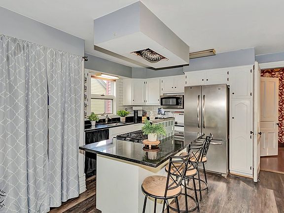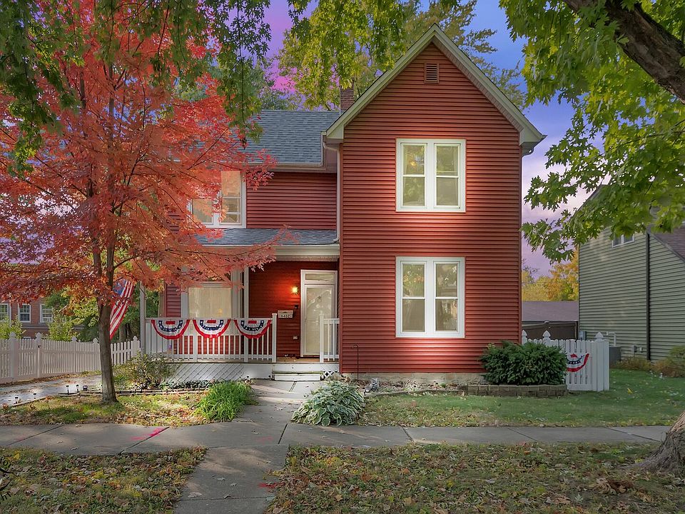 Historic charm meets downtown energy in this 1893 Oak Lawn home just steps from all the downtown action and Metra train station, set on a lot and a half with a massive deck ideal for entertaining! Transport yourself into timeless character in this beautifully maintained 3 bedroom plus office, 2 bath home. Inside, discover arched doorways, built-in stained glass, 10-foot ceilings, and the original fireplace, all showcasing the home's rich history. The updated kitchen features granite countertops, white cabinetry, and a classic subway tile backsplash, complemented by stylishly updated bathrooms for modern comfort. Enjoy outdoor living on the massive composite deck 2022, surrounded by a 2023 white picket fence, mature trees, a fire pit, and a storage shed. A/C 2019, new range hood on back order and will be installed. All appliances stay-just move in and fall in love! This Oak Lawn gem perfectly blends historic charm with suburban allure, complete with the quintessential white picket fence!