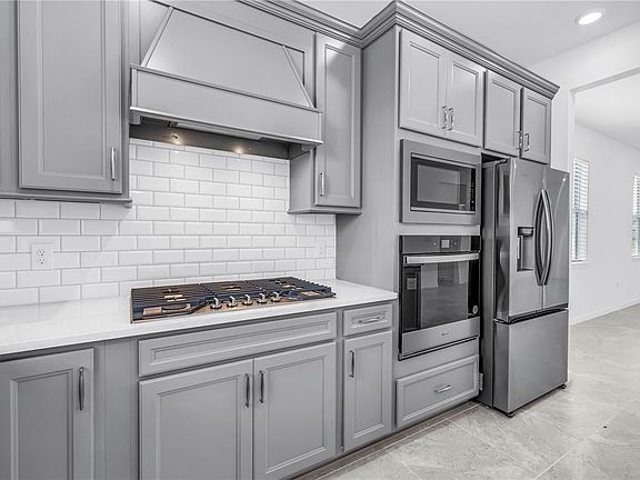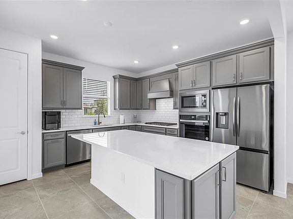 Large islandTennis courtsCommon outdoor spacesStone gray cabinetsPristine quartz countertopsSparkling poolPlush carpet