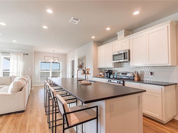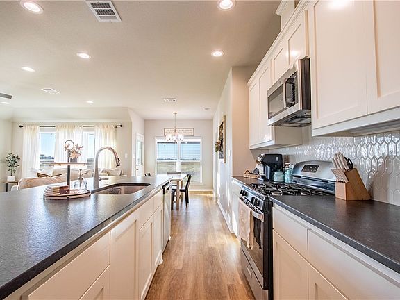 Inside, you’ll find an open-concept layout that seamlessly connects the living room, kitchen, and dining area—fantastic for gatherings with friends or quiet nights in with your family. The kitchen is a showstopper with stainless steel appliances, leathered granite countertops, and a gas range ready for all of your favorite recipes. The kitchen also features a nice large island with plenty of prep space.