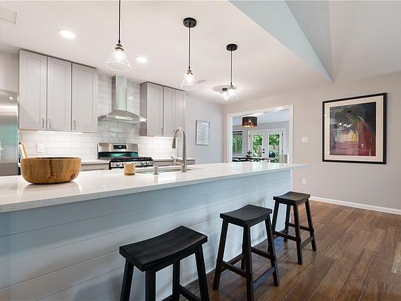 Gorgeous remodel of home in popular S. Austin neighborhood. Open floor plan. Renovated kitchen: recent cabinets, quartz counters, glass tile backsplash, recessed lights. Recent floors in main rooms and bedrooms. Updated interior doors and designer touches. Many windows replaced. Spacious living/dining room w/ wet bar, wine rack, & wall of windows/glass doors for abundant natural light. Serene and tranquil, backyard with recent cedar fence & two patios. New HVAC & hot water heater June 2020. Move-in ready!