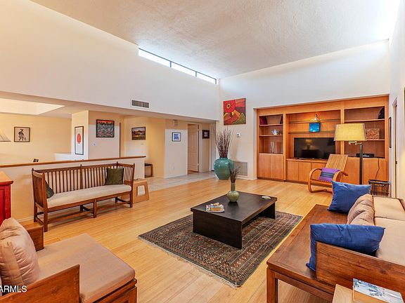 Exceptional McCormick Ranch enclave of Townhomes offers PICKLEBALL, TENNIS, HEATED POOL/SPA, Poolside KITCHEN, Lounge area with TV & FOOSBALL table, Restrooms with SHOWERS! Private gated access to PARK w/endless WALKING/BIKING PATHS, MOUNTAIN VIEWS, EZ ACCESS to DINING, SHOPPING, TALKING STICK, SPRING TRAINING, GOLF and 101 access! SPACIOUS HOME W/HIGH ceilings & CLERESTORY windows, SKYLIGHTS, BAMBOO & TILE flooring, UPDATED INTERIOR. COZY FIREPLACE on Patio, FORMAL DINING, HOA offers FREE Secured RV PARKING available within this BEAUTIFULLY LANDSCAPED NEIGHBORHOOD. SPLIT FLOOR PLAN for PRIVACY, GATED COURTYARD ENTRY. COMES FURNISHED. You can leave utilities in owners name and pay monthly! MOVE IN READY!! 6-month min lease.
