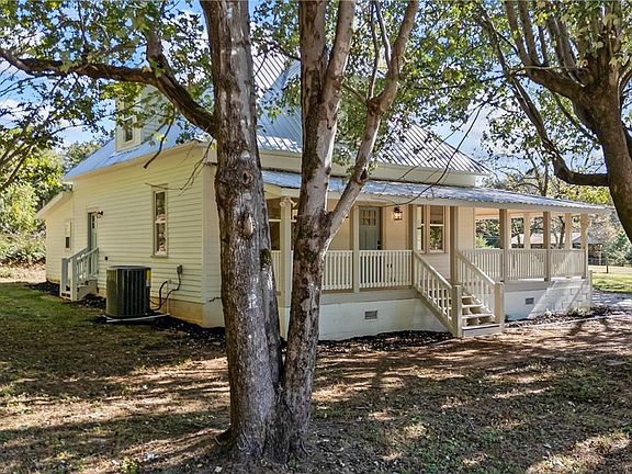 Step back in time with this beautifully restored country cottage farmhouse nestled on 3.79 acres with a pole barn! This timeless gem combines historic charm with modern comfort, featuring all-new plumbing and septic, electrical, windows, HVAC, and hot water heater. The thoughtfully reconfigured floor plan offers a spacious primary suite on the main level, complete with a luxurious ensuite bath showcasing a double-sink vanity, soaking tub, and oversized tile shower. The walk-in closet is truly impressive, providing abundant space and storage. The kitchen has been tastefully updated with quartz countertops, ample cabinet space, and a separate step-in pantry, perfect for anyone who loves to cook or entertain. A large guest bedroom on the main level includes a connected full bathroom with additional hallway access, ideal for family or visitors. Upstairs, you’ll find a versatile teen or in-law suite with its own full bath featuring a tile shower, offering privacy and flexibility for extended family or guests. Outside, enjoy the peaceful countryside setting, a sprawling 3.79-acre lot, and a pole barn perfect for hobbies, storage, or small livestock. This charming farmhouse truly blends classic southern charm with the modern updates you’ve been searching for and ready for you to call it home!