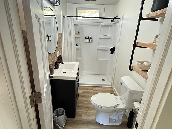 Newly renovated lake-adjacent home offering peaceful views and modern comfort. This charming property features an updated kitchen with butcher block countertops and new vinyl flooring throughout, the bright open layout. Enjoy quiet lake living with convenient access to shopping, dining, and major employers. The spacious yard and private drive make this home ideal for those seeking tranquility just minutes from town.