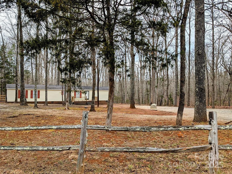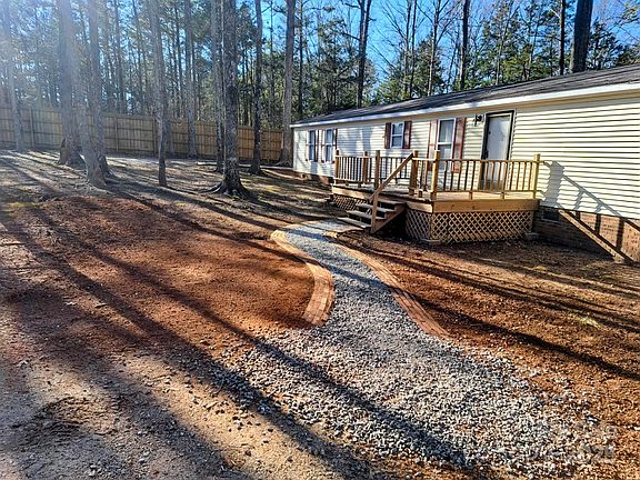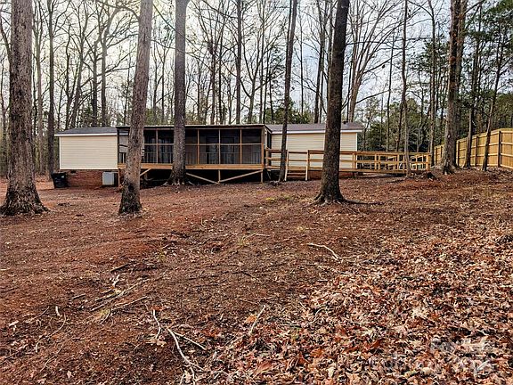 Welcome to the country! Beautifully maintained, super clean manufactured home in solid, excellent condition! Large lot with beautiful trees and secluded, quiet setting. Easy access to Waxhaw, Lancaster, Ballantyne. Spacious parking and turn around. Entry ramp at left side of house to back porch. Wide front porch deck to entry door. Immense, covered, airy, 12x28-foot rear screened porch - protected, beautiful back yard overlook. Living room flows to kitchen and dining areas. Wide open kitchen with extensive cabinets, laid out well. Roomy pantry off kitchen with laundry closet; back porch access from kitchen. Primary bedroom with ensuite full bath, generous walk-in closet. Second bedroom has great flexible space, full bath close by. Pergo laminate flooring throughout, tile in baths. All equipment is operating well. Crawl space is dry, clean, new ground plastic. Wired workshop/shed with work benches, plenty of light, storage space; floor and structure strong. Fridge, washer, dryer convey.