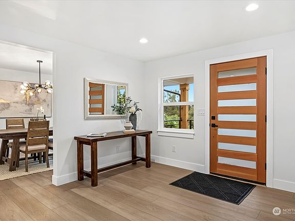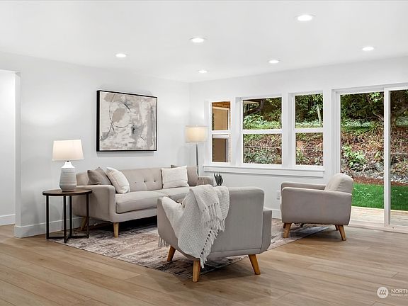 Embrace the best of mid century + modern living in this thoughtfully renovated home near Matthews Beach. Perfect for those seeking contemporary comforts in a spacious mid century layout, this property features a generous yard, 2-car garage, & ample parking. The permitted studs-out remodel includes high-end finishes, a functional floor plan, plus plenty of space for indoor & outdoor entertaining. The light-filled great room features a stylish kitchen with Bertazzoni induction range, Bosch appliances, & quartz countertops. A main floor primary en-suite & two guest bdrs offer convenience, while the lower level retreat provides 2 more bdrs, full bath, & rec room. Experience the ideal blend of style, comfort, functionality, and a prime location.