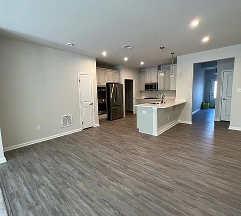 Available now. Built in 2021, it has never been lived in. This 3 bedroom, 2.5 baths, with 1,717 sqf livable space has most of the features of a modern home with plenty of closet/storage space. This beautiful FIRST FLOOR master townhome features open floor-plan and cathedral ceiling on the main level & two additional bedrooms upstairs, with a private bathroom for the master and a shared bathroom for the other two bathrooms. Main floor also has a half-bathroom, kitchen and dining space, living room, laundry space. Located in subdivision Stonehouse, a quiet and safe family friendly neighborhood. It is conveniently located near I-64. Neighborhood features pool and community clubhouse. The monthly rent is $2,400 for a year (minimum lenght) but the rate for a 2-year lease is $2,300. One-month rate security deposit required. Pets are allowed with a $500 non-refundable deposit. Utilities are paid by the tenant.