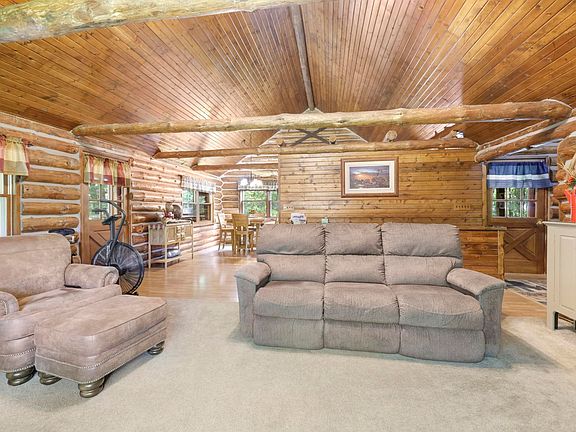 Escape to your own private retreat with this inviting log cabin set on five acres. Just a short drive from the Fox Valley, the property offers the perfect blend of convenience and seclusion. Surrounded by natural beauty, it’s far enough away to feel like a true getaway yet close to shopping, dining, and everyday amenities. A one-stall horse barn adds to the appeal, making it a great fit for hobby farm enthusiasts or just those seeking extra space for storage. Inside, rustic finishes and cozy living areas make it ideal for year-round living or weekend escapes. Relax on the porch, explore nearby recreation, or simply enjoy the quiet—this property delivers the best of both worlds. Room measurements were taken from floor plans. Seller requests 48 hours for binding acceptance.