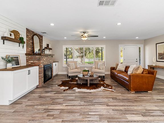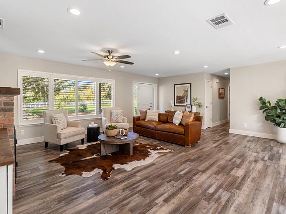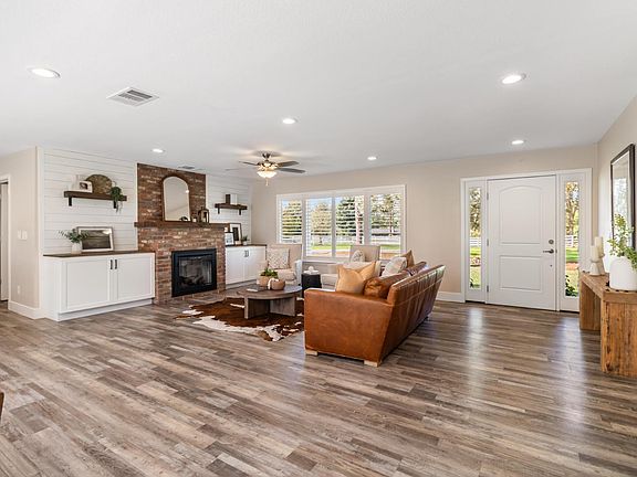 Experience the best of country living with modern style at this beautifully renovated 3-bedroom, 2.5-bath residence, ideally situated in the heart of Wilton. Set on approximately 5 acres of usable land, this open-concept home combines comfort, elegance, and functionality for the discerning buyer seeking space, serenity, and style. Step inside to find well-appointed finishes throughout, including upgraded laminate flooring, and plantation shutters. The well-equipped kitchen features stainless steel appliances, sleek countertops, and custom cabinetry perfect for both everyday living and entertaining. Thoughtful updates include newer HVAC, roof, siding, dual-pane windows, doors, insulation, a tankless water heater, a septic system, and cozy electric fireplace offering peace of mind and energy efficiency. Outdoors, the property is fully cross-fenced and ideal for animals, featuring a barn and a fenced, hot-wired 3.5-acre pasture. The expansive backyard has plenty of room for family and friends to gather and boasts a 5-foot no-climb fence with automatic sprinklers in both yards. Enjoy your own homegrown harvest if you'd like to plant a vegetable garden. Conveniently located just a short drive to Downtown Sacramento and great shopping off Highway 99. Don't miss this opportunity!