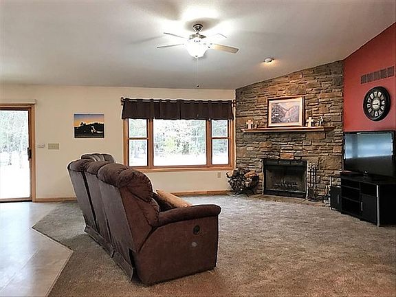 SUPER SPACIOUS 5 BR ON 4 ACRES! This home has it all! Huge great room w/wood fireplace & vaulted ceiling! Formal dining! Beautiful hickory cabinets & island in kitchen! Split BR floor plan! Large master w/walk-in, jetted tub & dual sinks! Main floor laundry! Lots of large windows to bring in the natural, wooded setting! 2 BR finished in lower & plumbed for 3rd bath! Peaceful & secluded at end of cul-de-sac & only 3 miles from town!