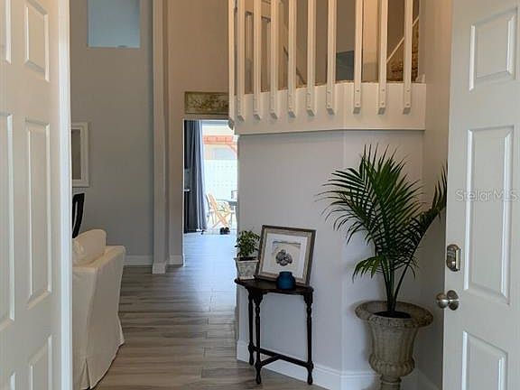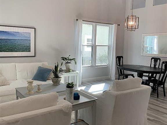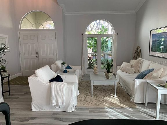 Fall in love with this storybook setting and model-perfect home in award winning, highly sought after Hunters Green. This beautiful 2300 sq ft home boasts 4 bedrooms, 2.5 baths, 2 car garage and fully fenced backyard. The entire first floor has porcelain tile in grey hues. 22' cathedral ceilings greet visitors with stunning crown molding and open airy floor plan. The kitchen has been meticulously updated featuring soft-close solid wood cabinetry, quartz countertops, and stainless appliances. On the second floor you'll find a double-door entry into a spacious master suite with a custom walk-in closet within a gorgeous master bath, along with 3 other nice sized bedrooms and a full bath. The backyard was fully fenced in and roof replaced in 2016. No expense has been spared in updating this beautiful home. Located in private, GATED, golf course community offering tennis, pool, and parks with convenient access to major highway, Wiregrass Mall, USF, and Flatwoods Park. Home is available furnished.