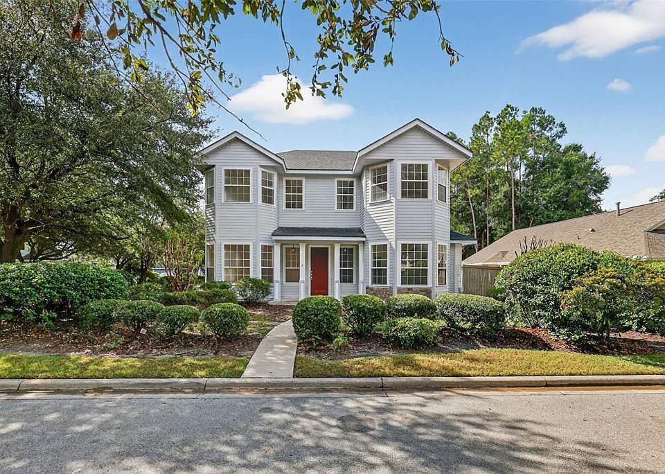 Seller will consider paying concessions at closing. Welcome to an exceptional opportunity in the desirable Haile Plantation Unit 35, Phase 4! This beautifully designed two-story residence offers 3 bedrooms, 2 full baths, plus 1 half bath, and approximately 2,235 sq ft of living space, resting on a generous 0.17-acre corner lot. Step inside to discover soaring 10-foot ceilings and abundant natural light that accentuates the open floor plan. A spacious great room flows seamlessly into the dining and kitchen areas, ideal for entertaining or everyday living. The new kitchen with tasteful backsplash and new appliances is well situated to serve both casual meals and formal gatherings. Upstairs, the master bedroom impresses with a bay window, a generous walk-in closet, and a private bath. All three bedrooms are located on the upper level, offering privacy and a true “upstairs retreat” feel. Dual HVAC systems ensure efficient climate control throughout the home. A fenced backyard provides privacy and outdoor enjoyment. Just a short stroll to Haile Plantation’s Publix shopping center and nearby dining & retail stores.