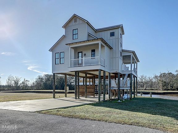 Here's a camp that you will want to call HOME! Located just 30 minutes from Lafayette, south of Abbeville in the private, gated subdivision of The Cove at Live Oak. The fully bulkheaded property sits majestically on the Vermilion River and a short boat ride to Vermilion Bay. FULLY FURNISHED, freshly painted, including refrigerator, washer & dryer with gorgeous designer finishes and furnishings, the camp includes antique doors, slab quartzite countertops, high end kitchen appliances including wine cooler, 2 walk-in showers, private master suite, antique wood beams, custom window treatments and more.. The outdoor living area is just as beautiful as the interior space. The large, covered exterior spaces are comfortably outfitted with a porch bed swing, wired for tv, plumbed for outdoor kitchen and gas fire pit. Camp is wired for cameras, Sonos speakers and alarm system. Camp is compliant with FEMA guidelines for coastal construction. Truly...A MUST SEE!!!